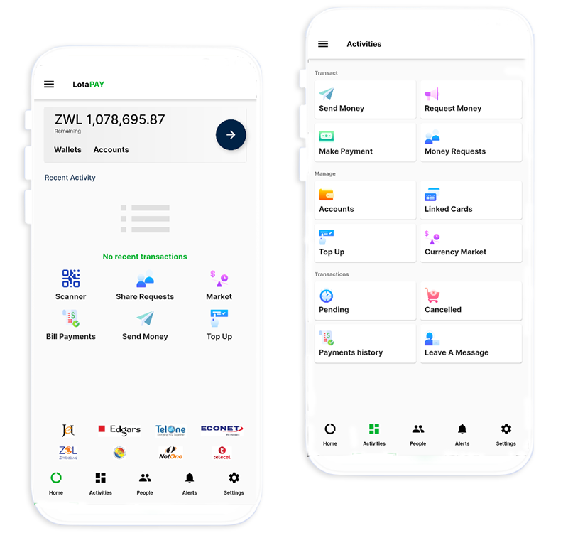 Send & Receive Payment to your Wallet or Bank Account. Pay Bills such as DSTV, AIRTIME. ZOL, ZESA, EDGARS, JET, TELONE Payment are instantly
